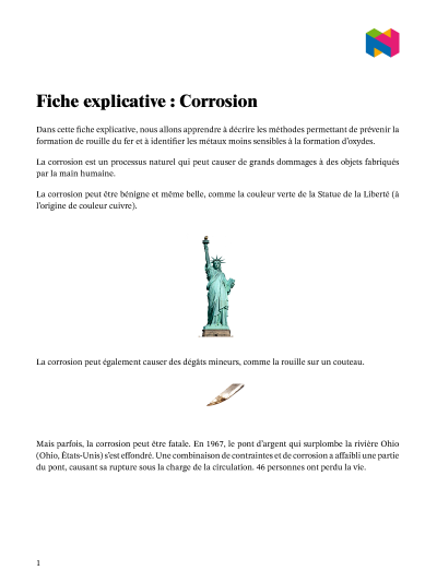 Dans cette leçon, nous allons apprendre à décrire des méthodes pour la prévention de la rouille du fer et à identifier les métaux moins sensibles à la formation d’oxyde.
