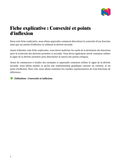 Dans cette leçon, nous allons apprendre comment déterminer la convexité d'une fonction ainsi que ses points d'inflexion en utilisant la dérivée seconde.