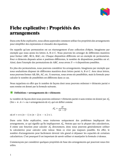 Dans cette leçon, nous allons apprendre comment utiliser les propriétés des arrangements pour simplifier des expressions et résoudre des équations.