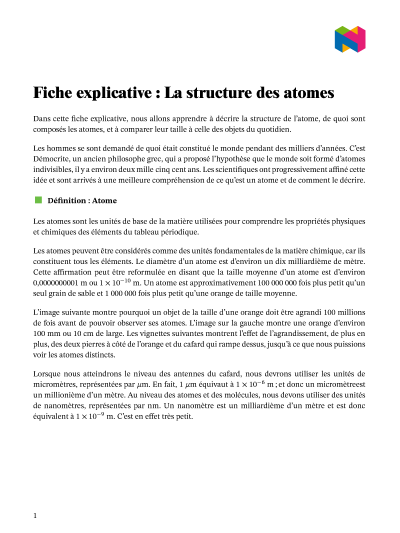 Dans cette leçon, nous allons apprendre à décrire la structure des atomes, à définir leur composition et à faire le lien entre leur taille et les objets du quotidien.