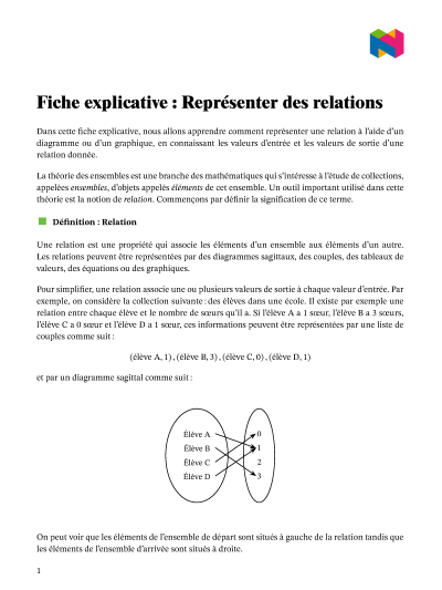 Dans cette leçon, nous allons apprendre comment représenter une relation à l'aide d'un diagramme ou d'un graphique, en connaissant les valeurs d'entrée et les valeurs de sortie d'une relation donnée.