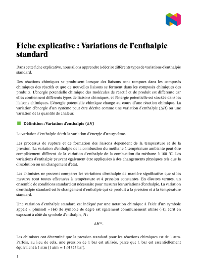 Dans cette leçon, nous allons apprendre comment décrire et définir différents types de variations d’enthalpie standard.