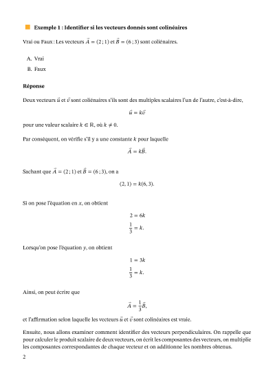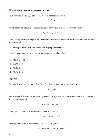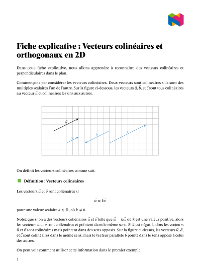 Dans cette leçon, nous allons apprendre comment identifier les vecteurs colinéaires et orthogonaux en 2D.