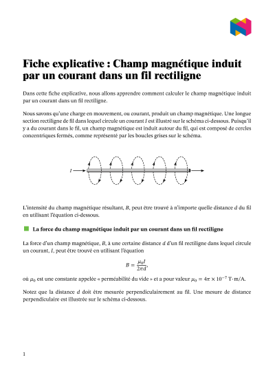 Dans cette leçon, nous allons apprendre comment calculer le champ magnétique induit par un courant dans un fil rectiligne.