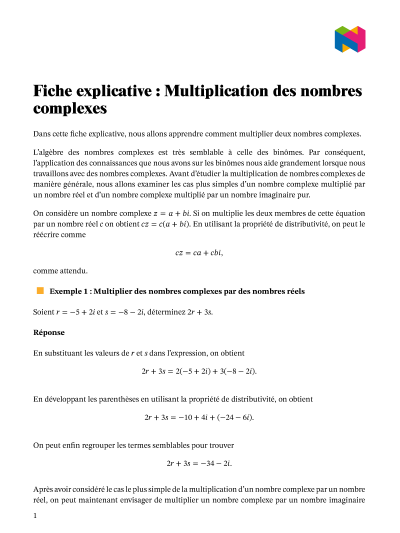 Dans cette leçon, nous allons apprendre comment multiplier deux nombres complexes.