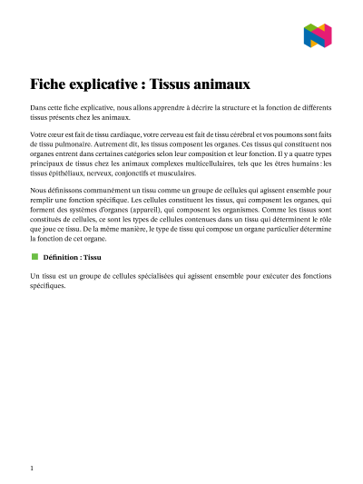 Dans cette leçon, nous allons apprendre à décrire la structure et la fonction des différents tissus trouvés chez les animaux.