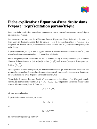 Dans cette leçon, nous allons apprendre comment déterminer les équations paramétriques d'une droite dans l'espace.