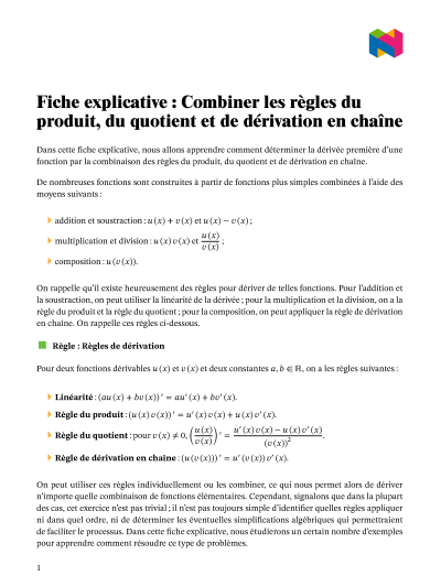 Dans cette leçon, nous allons apprendre comment déterminer la dérivée première d'une fonction par la combinaison des règles du produit, du quotient et de dérivation en chaîne.