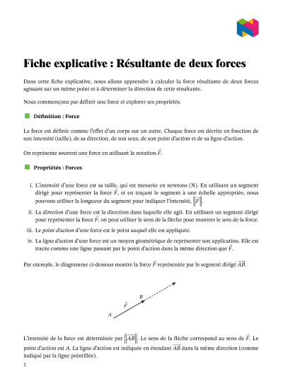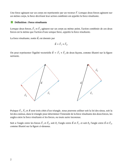Dans cette leçon, nous allons apprendre à trouver la résultante de deux forces agissant en un point, et à déterminer la direction de la résultante.