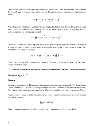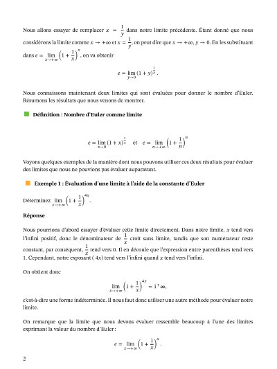 Lesson: Étudier une limite avec le nombre d’Euler Mathématiques • Third Year of Secondary School