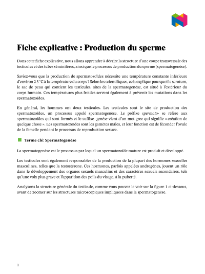 Dans cette leçon, nous allons apprendre comment décrire la structure d'un tubule séminifère, ainsi que le processus de production du sperme.