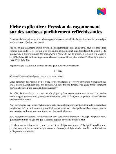 Dans cette leçon, nous allons apprendre comment calculer la pression exercée sur un objet par la lumière réfléchie par celui-ci.