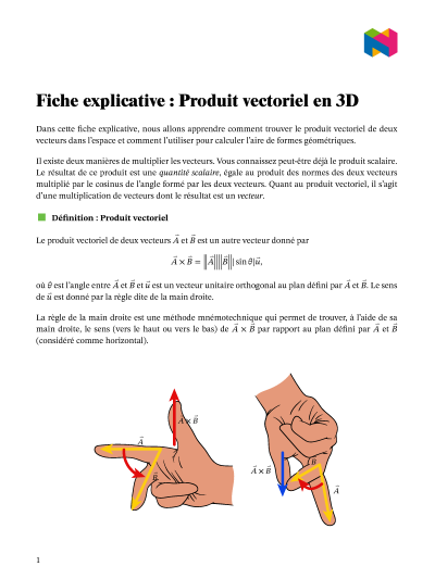 Dans cette leçon, nous allons apprendre à déterminer le produit vectoriel de deux vecteurs dans l'espace, et à l'utiliser pour calculer l'aire des figures géométriques.