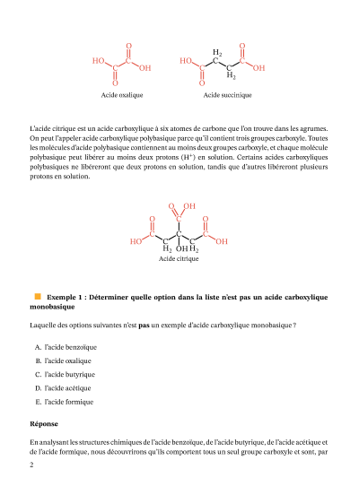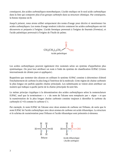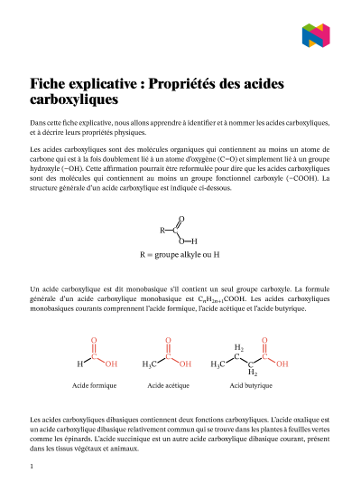 Dans cette leçon, nous allons apprendre à identifier et à nommer les acides carboxyliques, et à décrire leurs propriétés physiques.