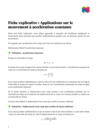 Dans cette leçon, nous allons apprendre comment résoudre des problèmes impliquant le mouvement d'une particule avec une accélération constante sur une ou plusieurs sections de son trajet.
