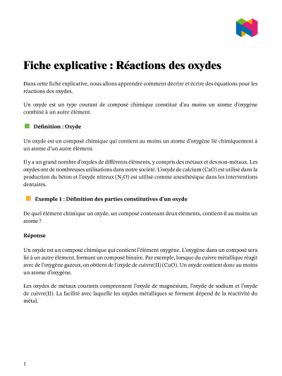 Dans cette leçon, nous allons apprendre comment décrire et écrire des équations pour les réactions des oxydes.