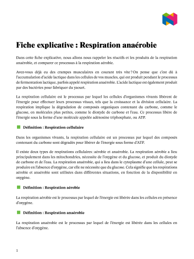 Dans cette leçon, nous allons rappeler les réactifs et les produits de la respiration anaérobie, et comparer ce processus à la respiration aérobie.