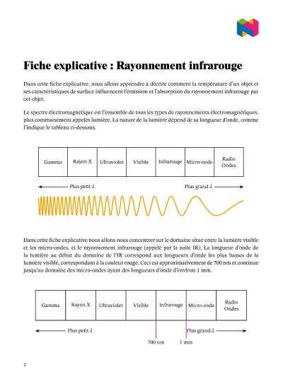 Dans cette leçon, nous allons apprendre comment décrire la manière dont la température d’un objet et les caractéristiques de sa surface affectent l’émission et l’absorption du rayonnement infrarouge par cet objet.