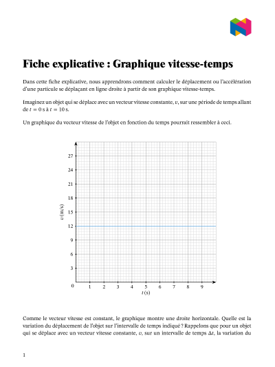 Dans cette leçon, nous allons apprendre comment calculer le déplacement ou l'accélération d'une particule se déplaçant de manière rectiligne à partir de son graphique vitesse-temps.