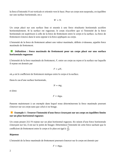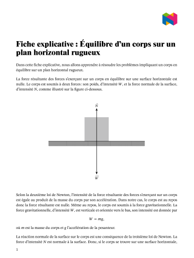 Dans cette leçon, nous allons apprendre comment résoudre des problèmes impliquant l'équilibre d'un corps sur un plan horizontal rugueux.