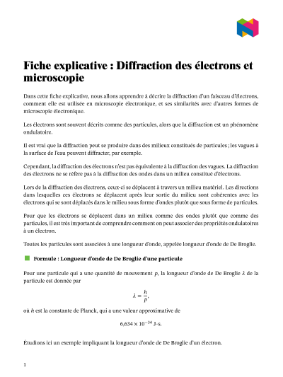 Dans cette leçon, nous allons apprendre comment décrire la diffraction de faisceau d’électrons, comment elle est utilisée en microscopie électronique, et comment les autres formes de microscopie électronique se comparent à celle-ci.