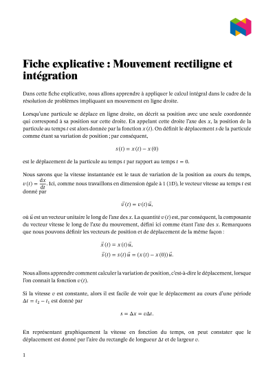 Dans cette leçon, nous allons apprendre comment appliquer les intégrales pour résoudre des problèmes impliquant un mouvement rectiligne.