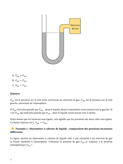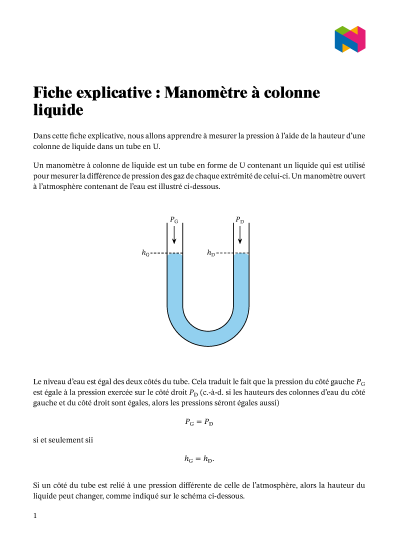 Dans cette leçon, nous allons apprendre à décrire comment mesurer la pression en utilisant la hauteur d’une colonne de liquide dans un tube en forme de U.