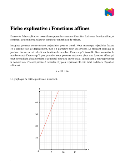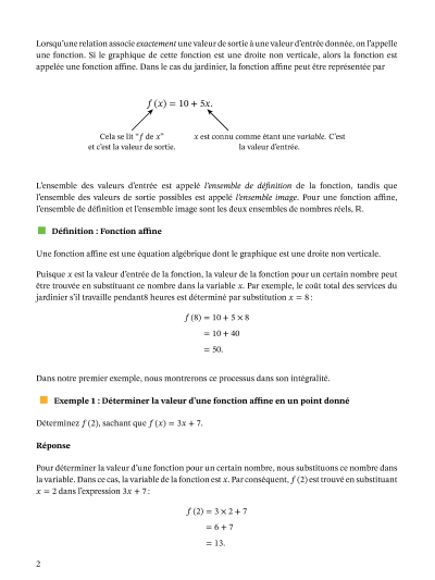 Dans cette leçon, nous allons apprendre comment identifier, écrire une fonction affine, et comment déterminer sa valeur et compléter son tableau de valeurs.