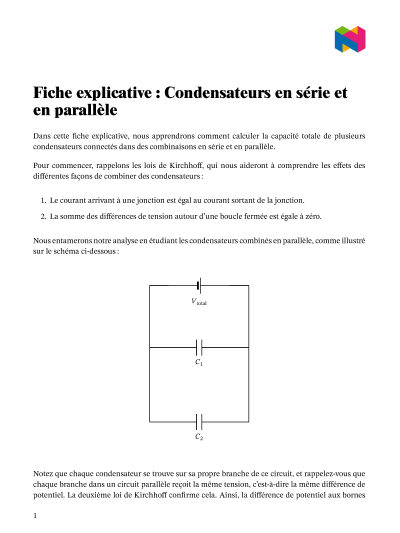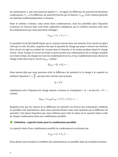 Dans cette leçon, nous allons apprendre comment calculer la capacité totale de plusieurs condensateurs connectés en série et en parallèles.