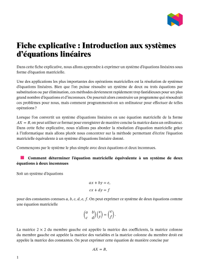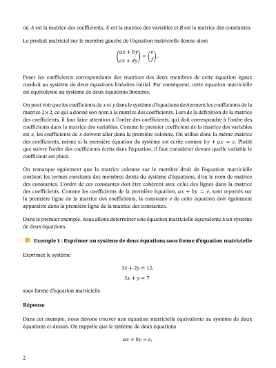 Dans cette leçon, nous allons apprendre comment exprimer un système d'équations linéaires sous forme d'une équation matricielle.