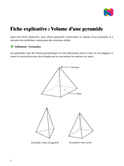 Dans cette leçon, nous allons apprendre à déterminer le volume d'une pyramide, et à résoudre des problèmes comprenant des situations réelles.