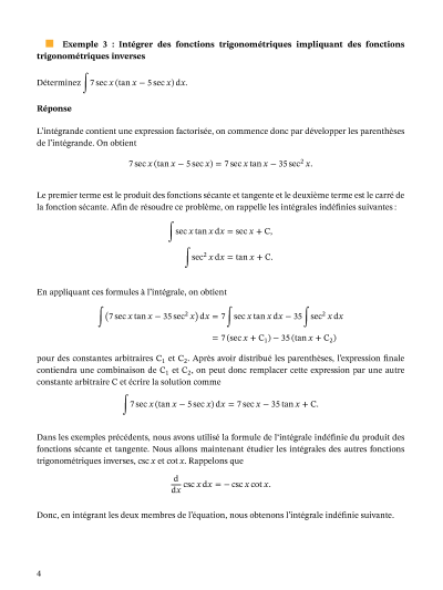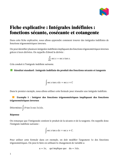 Dans cette leçon, nous allons apprendre comment déterminer les intégrales indéfinies de fonctions résultant en des fonctions sécante, cosécante et cotangente.