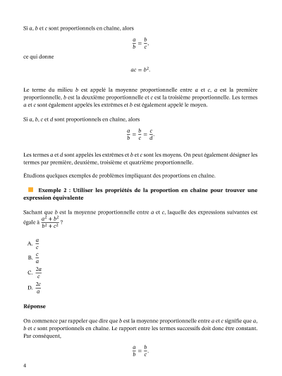 Dans cette leçon, nous allons apprendre comment utiliser les propriétés des proportions pour déterminer une valeur inconnue dans une relation proportionnelle et prouver des assertions algébriques.