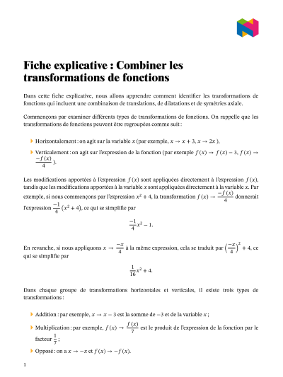 Dans cette leçon, nous allons apprendre comment identifier les transformations de fonctions qui incluent une combinaison de translation, de dilatation et de symétrie axiale.