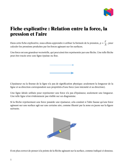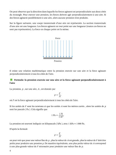 Dans cette leçon, nous allons apprendre comment utiliser la formule de calcul de la pression, 𝑝 = 𝐹/𝐴, pour calculer les pressions produites par les forces agissant sur les aires.