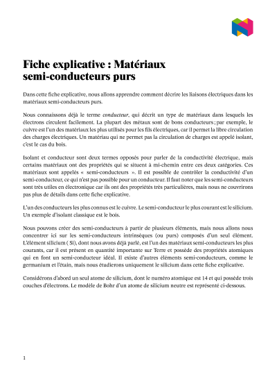 Dans cette leçon, nous allons apprendre comment décrire les liaisons électriques présentes dans les matériaux semi-conducteurs purs.