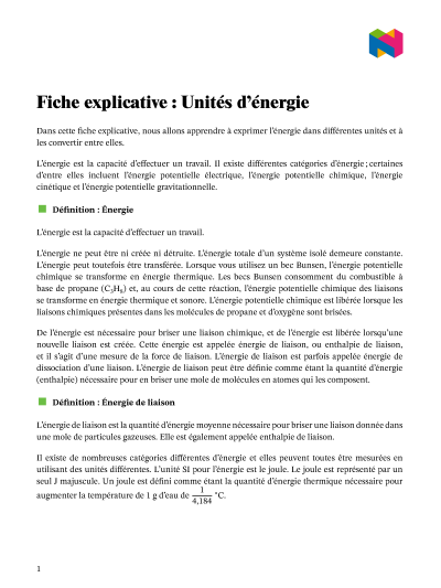 Dans cette leçon, nous allons apprendre à exprimer l’énergie dans différentes unités, et à convertir ces unités entre elles.