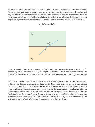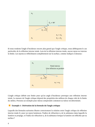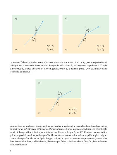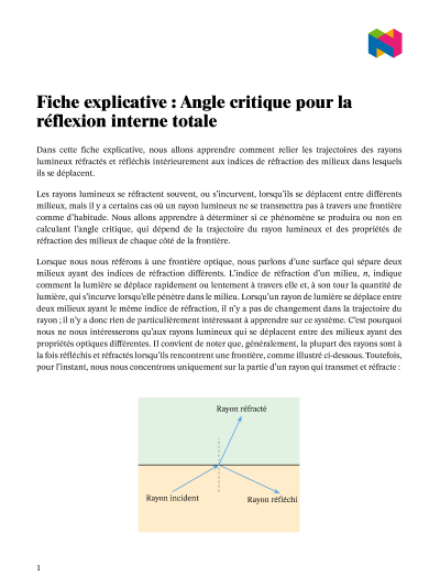 Dans cette leçon, nous allons apprendre comment relier les trajectoires des rayons lumineux réfractés et réfléchis intérieurement aux indices de réfraction des milieux qu'ils traversent.