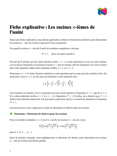 Dans cette leçon, nous allons apprendre comment utiliser la formule de Moivre pour trouver les racines 𝑛-ièmes de l'unité tout en explorant leurs propriétés.