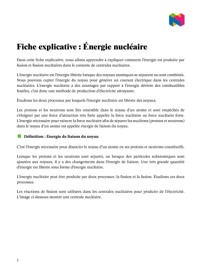 Dans cette leçon, nous allons apprendre à expliquer comment l’énergie est produite par fusion et fission nucléaires dans le contexte des centrales nucléaires.