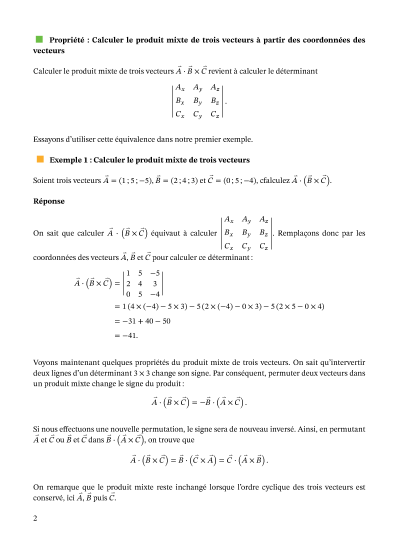 Dans cette leçon, nous allons apprendre comment calculer le produit mixte, et comment appliquer cette notion dans des situations géométriques.