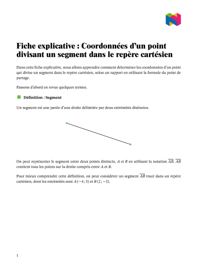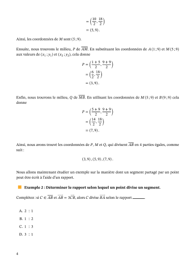 Dans cette leçon, nous allons apprendre comment déterminer les coordonnées d'un point qui divise un segment dans le repère cartésien, selon un rapport en utilisant la formule du point de partage.