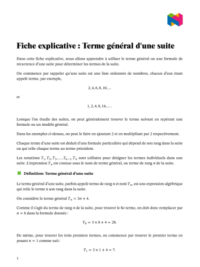 Dans cette leçon, nous allons apprendre comment utiliser le terme général ou une formule de récurrence d'une suite pour déterminer les termes de la suite.
