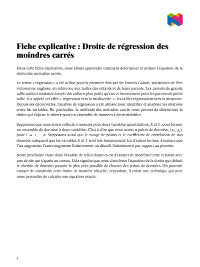 Dans cette leçon, nous allons apprendre comment déterminer et utiliser l'équation de la droite des moindres carrés.