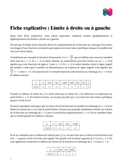 Dans cette leçon, nous allons apprendre comment étudier graphiquement et algébriquement les limites à droite ou à gauche.