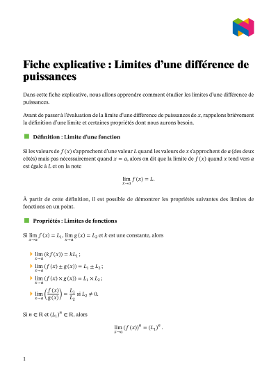Dans cette leçon, nous allons apprendre comment étudier les limites d'une différence de puissances.