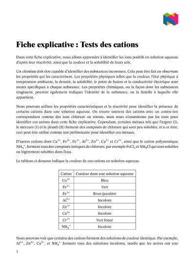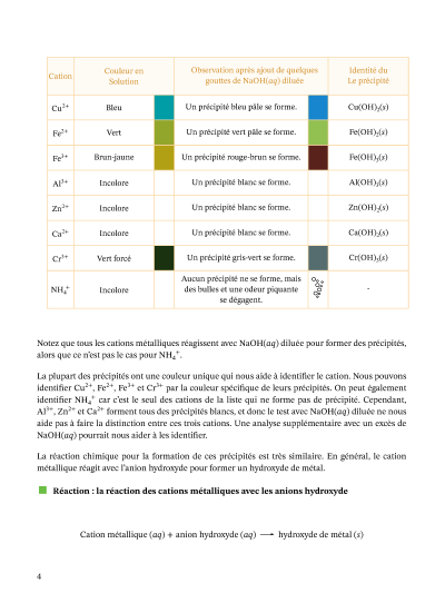 Dans cette leçon, nous allons apprendre comment identifier les ions positifs en solution aqueuse d’après leur réactivité, ainsi que la couleur et la solubilité de leurs sels.