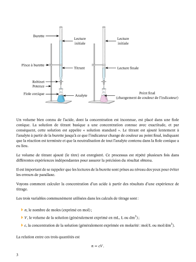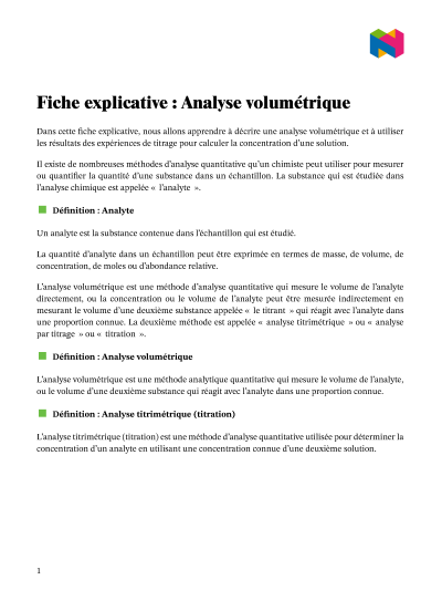 Dans cette leçon, nous allons apprendre à décrire l’analyse volumétrique, et à utiliser les résultats des expériences de titrage pour calculer la concentration d’une solution.