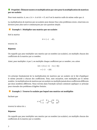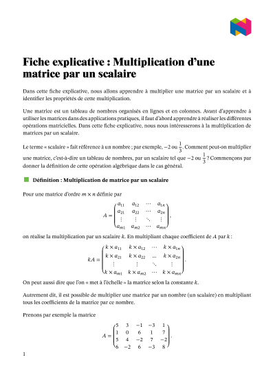 Dans cette leçon, nous allons apprendre à multiplier une matrice par un scalaire, et à identifier les propriétés de leur multiplication.