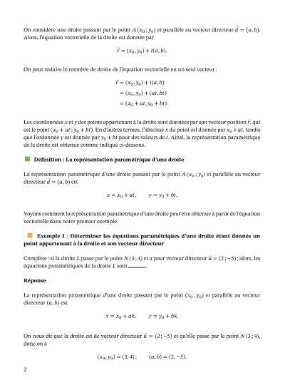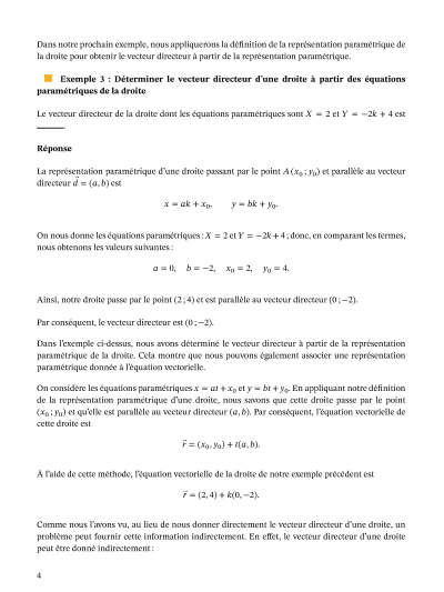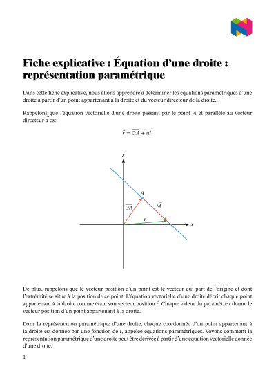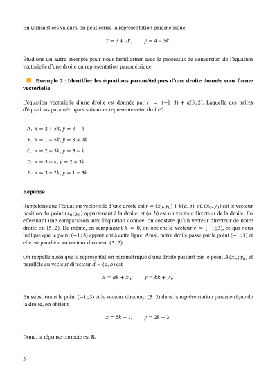 Dans cette leçon, nous allons apprendre comment déterminer les équations paramétriques d'une droite à partir d'un point appartenant à la droite et du vecteur directeur de la droite.